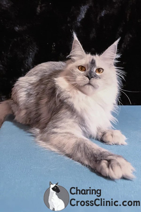 This little Maine Coon kitten is on her way to becoming a stunning adult at a solid 13-18 lbs, but she's already showing signs of being the perfect sidekick for your home. Whether it's playtime or snuggle time, she's always up for spending time with her humans. She's incredibly affectionate and can't get enough of hanging out, making her a perfect companion for someone who loves a kitten who's all about the love.