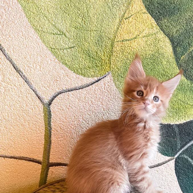 Urus is a vibrant male Maine Coon with a fiery red coat and striking orange eyes. Born on June 9, 2024, he?s nearly a year old and full of youthful energy. Weighing 4.4 lbs, he?s growing steadily and ready to make a warm addition to a loving family. Urus is travel-ready and waiting for someone to welcome him home.
